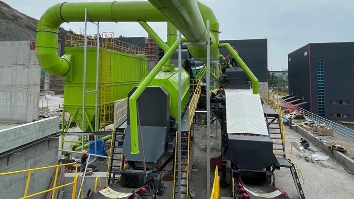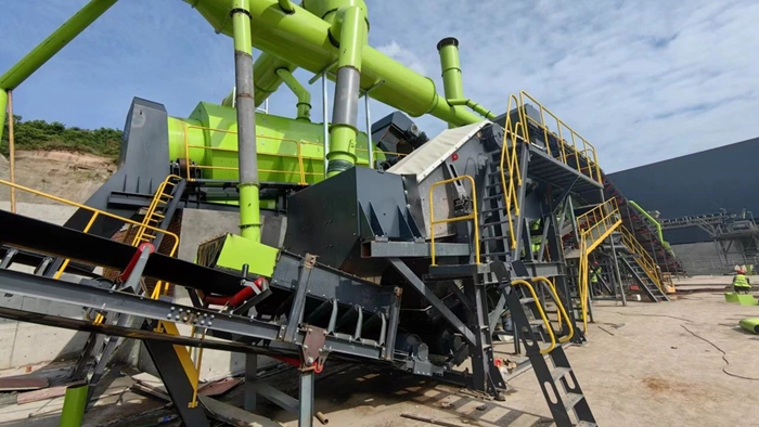核心設(shè)備:鵝頸式輕型板喂機(jī)和中型板喂機(jī),全密封輸送帶,負(fù)壓臥式風(fēng)選機(jī)、階梯棒條篩、人工+智能化機(jī)器人聯(lián)合分揀平臺(tái)、雙軸撕裂機(jī)、除鐵器、除塵器等。